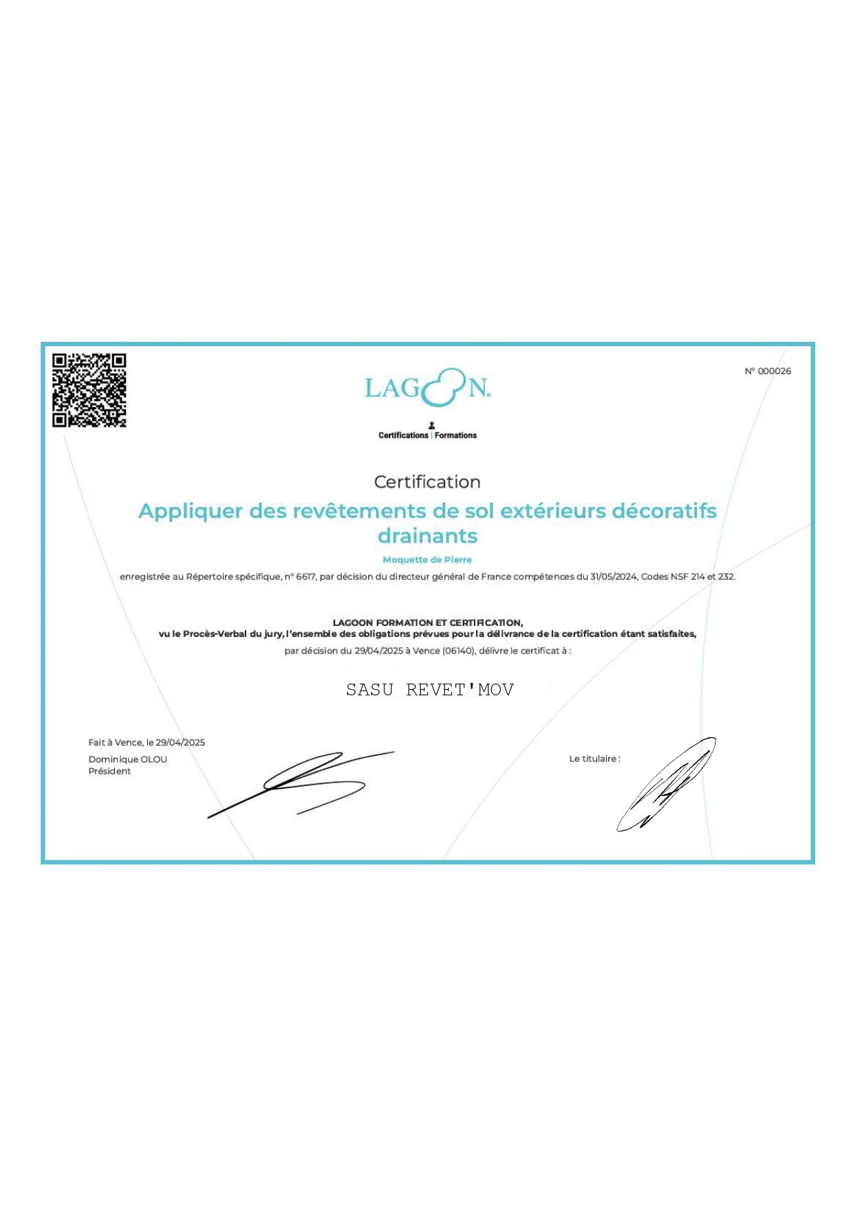 Nous sommes officiellement certifiés grâce a nos formations reconnu par l'état. Nous garantissons des services de haute qualité. Nos équipes, toutes qualifiées, mettent leur expertise et leur professionnalisme au service de chaque projet, garantissant des résultats à la hauteur de vos attentes.