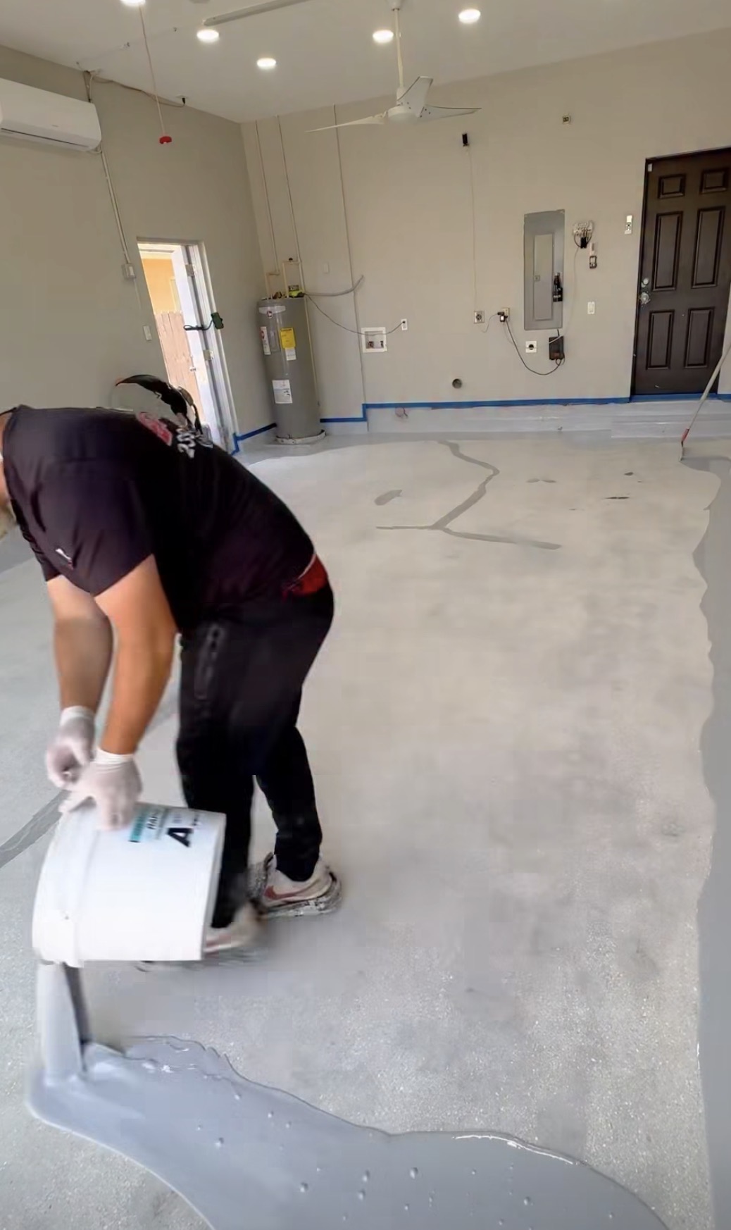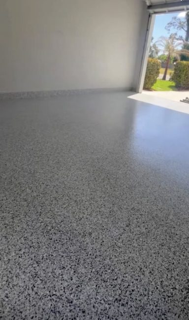 Entrepôts réalisés par notre équipe en résine pailletée. Solution idéale pour les sols de garage !